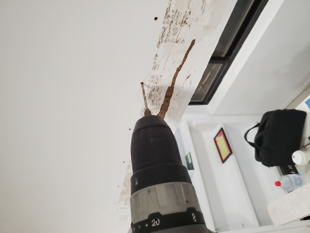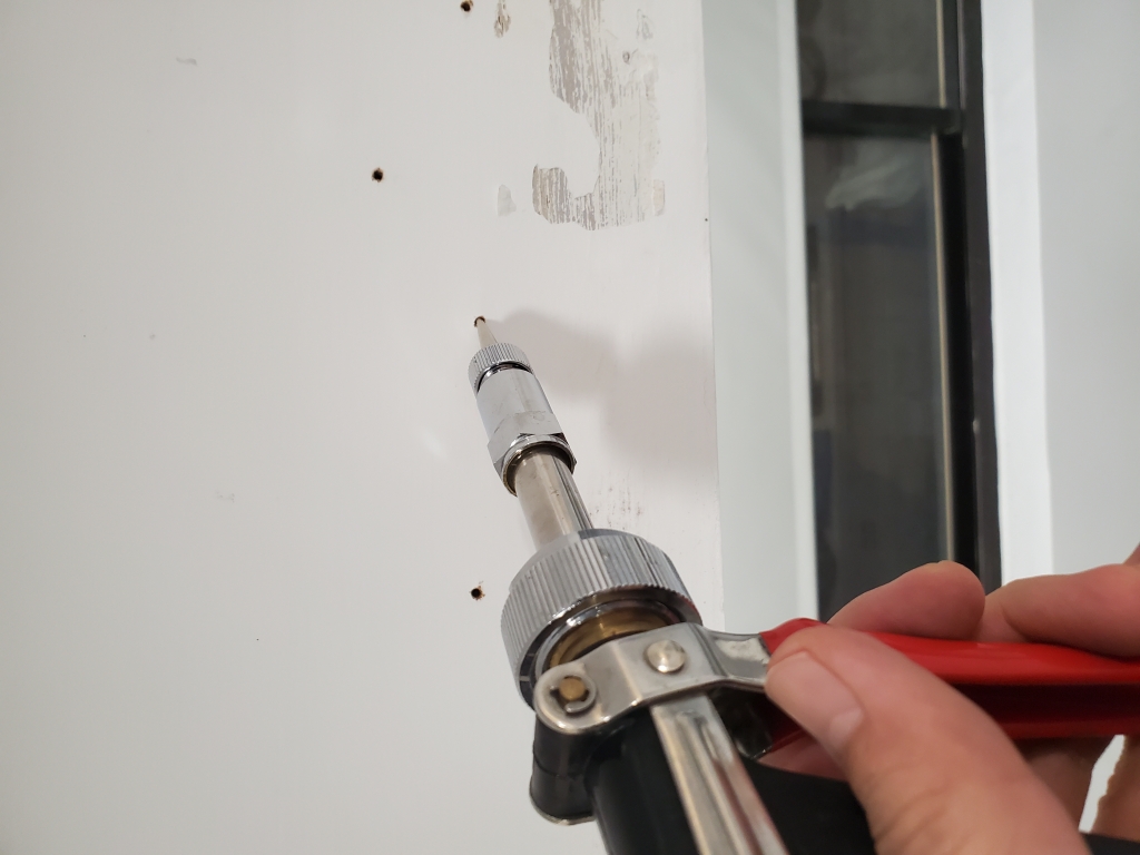 白蟻防治鑽孔灌藥進行中