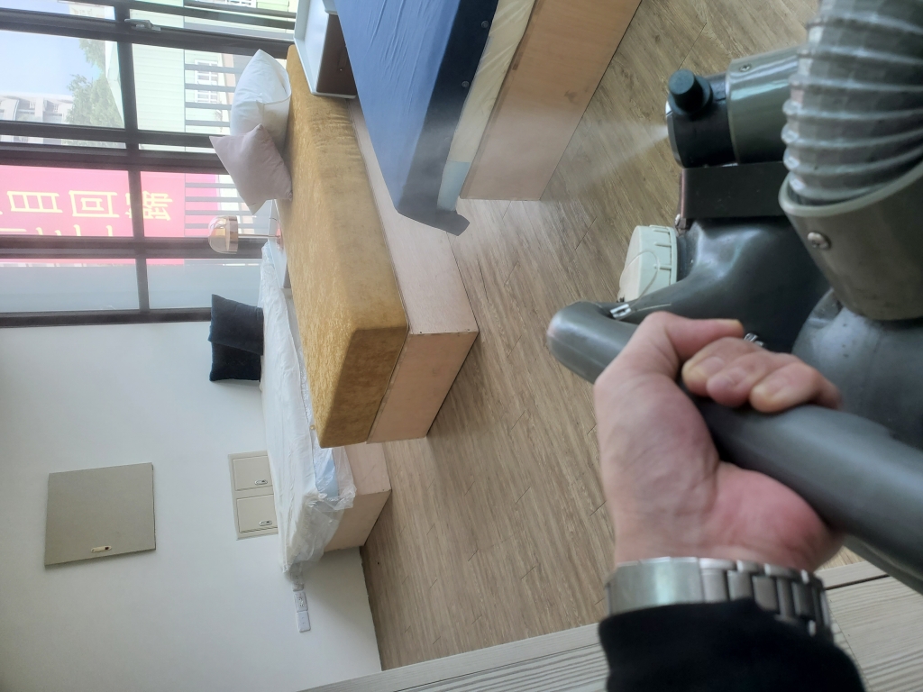 使用空間噴灑機殺滅室內蚊蟲、美洲大蟑螂等。此機器為室內專用機,無油煙無藥劑痕跡污漬,乾淨又衛生。